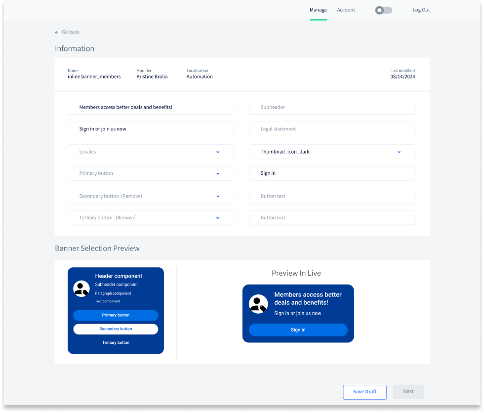 Enabled governed flexibility by defining configurable banner layouts that support diverse use cases while preserving consistency, accessibility, and compliance.