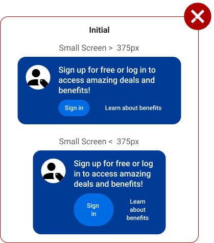 This banner design serves as a foundational entry point for authentication on all page types, defining how sign-in and account creation are safely and consistently initiated across1,000+ pages.