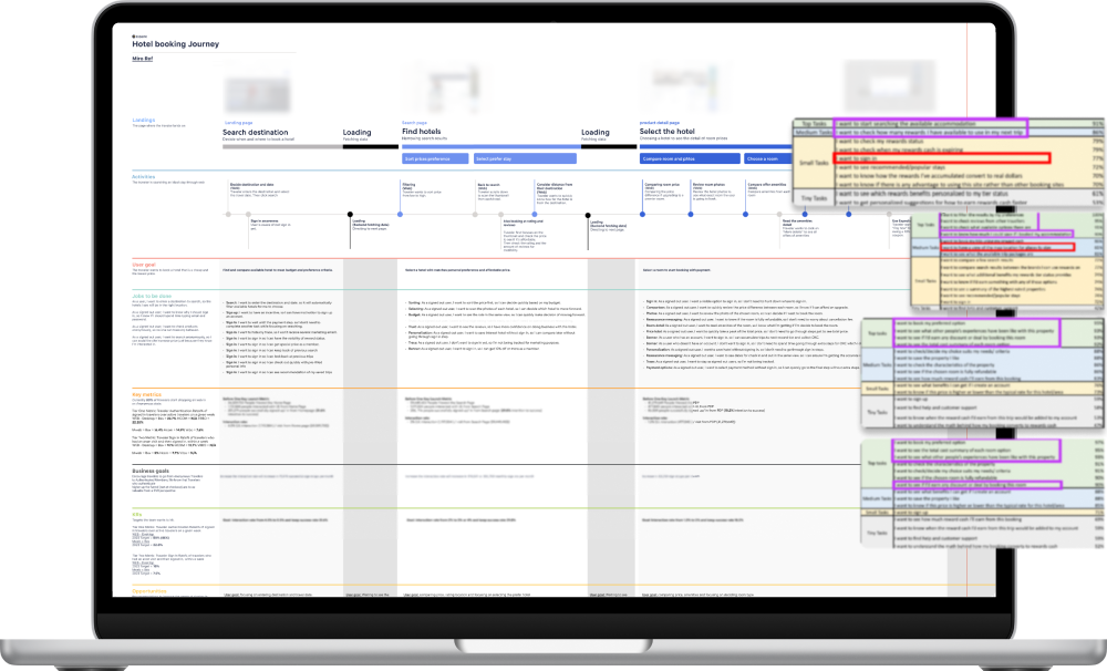 Product data indicated that travelers who authenticate earlier in the funnel are up to 4× more valuable from a conversion perspective. Based on projected interaction uplift, this approach could unlock 75,000+ additional successful sign-ins per month. While research helped identify the right direction, business investment in research needed to be scalable, producing insights that could support multiple initiatives over several quarters.